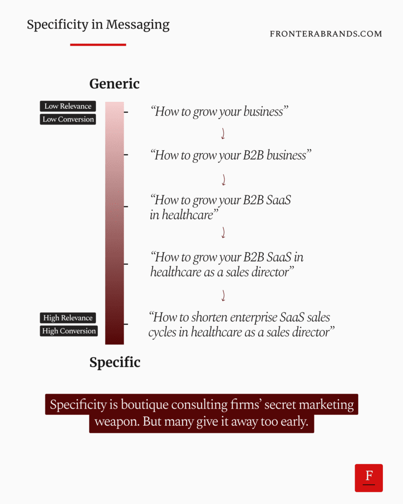 Boutique consulting firms make most of their revenue from a single service. But that core service gets only a tiny share of their messaging. You know why? Because they fear losing out. “What if somebody is looking for our other offers?” “What if we miss an opportunity?” So they list 10 services on their websites. Their content talks about 10 different value points related to different services. They hedge. But this ‘just in case’ messaging kills sales. Warren Buffett has a quote I like:...