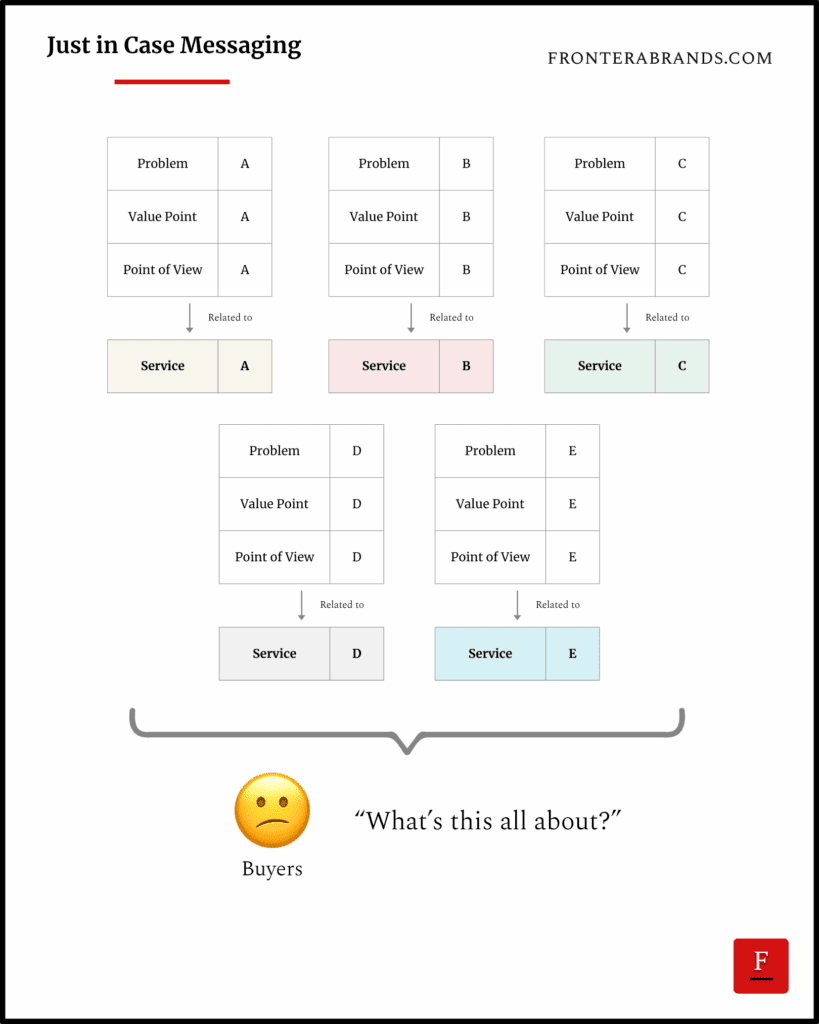 Boutique consulting firms make most of their revenue from a single service. But that core service gets only a tiny share of their messaging. You know why? Because they fear losing out. “What if somebody is looking for our other offers?” “What if we miss an opportunity?” So they list 10 services on their websites. Their content talks about 10 different value points related to different services. They hedge. But this ‘just in case’ messaging kills sales. Warren Buffett has a quote I like:...