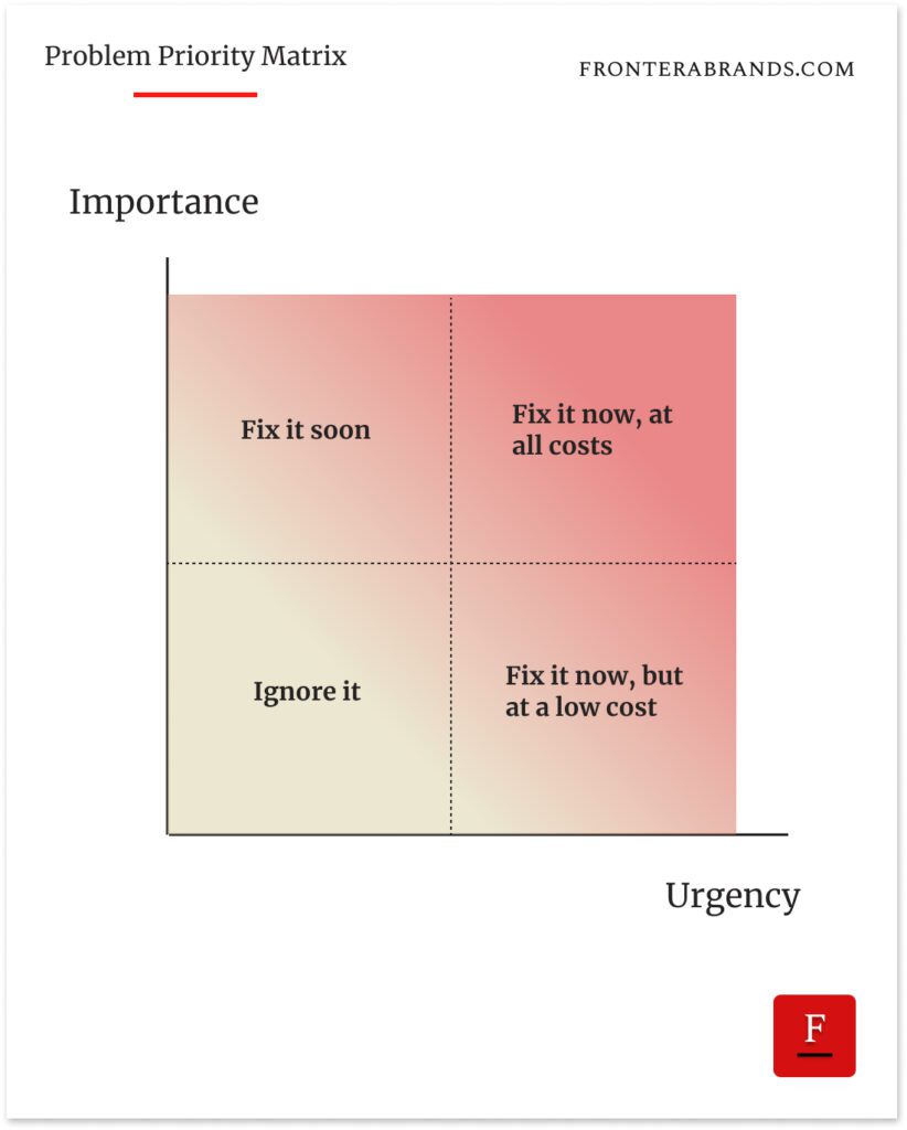 It’s a simple matrix for productivity geeks to prioritize what tasks they have to do. Depending on the importance and urgency of the task: you do, delegate, decide when to do, or eliminate it. The funny thing is your buyers intuitively think this way. When a problem is too pressing and important, they decide to fix it now. But if a problem is neither important nor urgent, they ignore it. So it looks like this: